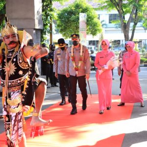 Penyambutan diawali dengan pengalungan bunga oleh AKBP Darman didampingi Istri kepada AKBP Rahman Wijaya beserta Ibu Ketua Bhayangkari Cabang Tuban Ibu Merlin Rahman di pintu gerbang Polres Tuban dilanjutkan tradisi memasuki gerbang pora.