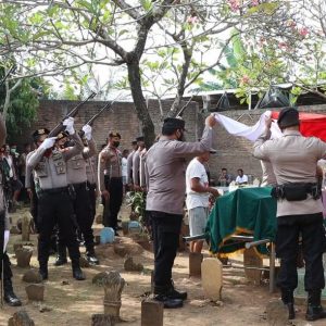 Upacara pemakaman yang berlangsung hikmat tersebut dilakukan sesuai dengan tata cara Dinas Kepolisian Negara Republik Indonesia.