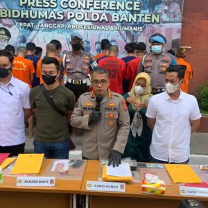 “Adapun dari Ditreskrimum Polda Banten 3 tersangka berinisial KH (50), JH (34) dan SB (46), Polresta Tangerang 9 tersangka berinisial SK (40) , MU (42), AU (38), AL (36), SH (40), SR (36), SY (33), EN (28) dan MS (51), Polres Cilegon 3 tersangka WF (53), SU (24) dan SR (37), Polres Pandeglang 2 tersangka KD (58) dan PE (55), Polresta Serang Kota 2 tersangka SS (34) dan NR (46), Polres Lebak 3 tersangka DJ (35), RS (52) dan MR (63), Polres Serang 2 tersangka KS (39) dan HH (18),” tambahnya.