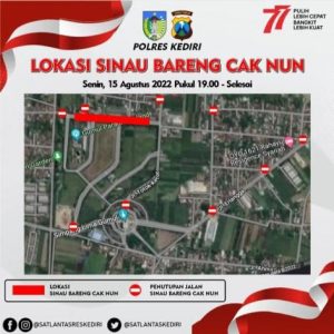 Detik Bhayangkara.com, Kediri – Serangkaian Peringatan HUT RI Ke-77 di Kabupaten Kediri sudah dimulai. Salah satunya adalah Sinau Bareng MH. Ainun Nadjib. Pada kegiatan tersebut, Dinas Perhubungan akan melakukan pengalihan arus di kawasan Simpang Lima Gumul (SLG).