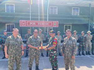 Detik Bhayangkara.com, Kab. Sanggau – Satgas Pamtas RI-MLY Yonif 645/Gty melaksanakan serah terima Personil dengan Tentera Diraja Malaysia (TDM) Dalam rangka pemenuhan Pos Gabungan Bersama RI-Malaysia Tahun 2022, serah terima dipimpin langsung Dansatgas Pamtas RI-MLY Yonif 645/Gty Letkol Inf Hudallah, S.H. kepada Brigade Commander Brig Gen Mohd Kamil Bin Hj. Abdul Latief, bertempat di Zona Netral PLBN Entikong Kab. Sanggau, Senin (15/08/2022).