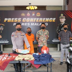 “Awalnya kejadian tersebut sempat Viral di Medsos, kemudian Sat Reskrim Polres Malang menindak lanjuti dan mencari informasi tentang kebenaran kejadian tersebut. Setelah terkonfirmasi bahwa kejadian Curas tersebut benar, Anggota Sat Reskrim Polres Malang mendatangi rumah Korban. Namun, dikarenakan Korban belum melaporkan kejadian yang dialaminya, Korban dibawa ke SPKT Polres Malang guna membuat Laporan Polisi,” ujar Kasi Humas Polres Malang Iptu A. Taufik saat melakukan press conference di lobi Mapolres Malang, Kecamatan Kepanjen, Kabupaten Malang, Jumat (19/08).