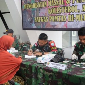 “Kami mengadakan pengobatan massal gratis kepada warga masyarakat perbatasan dan sekaligus bagikan sargal,” ungkap dansatgas