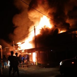 Sembilan ruko yang berbahan bangunan kayu habis dilalap si jago merah diantara ruko-ruko tersebut ada Apotek ,penjual motor bekas, toko ATK dan fotocopy, yang lainnya usaha barang-barang kelontong.