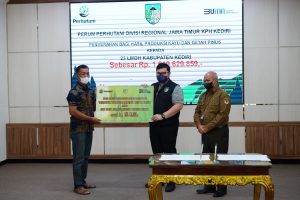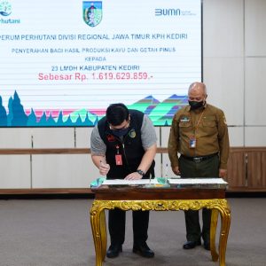 Selain melakukan penandatanganan kesepakatan bersama, dalam pertemuan itu Perum Perhutani Divisi Regional Jawa Timur KPH Kediri menyerahkan secara simbolis bagi hasil produksi kayu dan getah pinus kepada 23 LMDH sebesar Rp1,6 miliar. (RD)