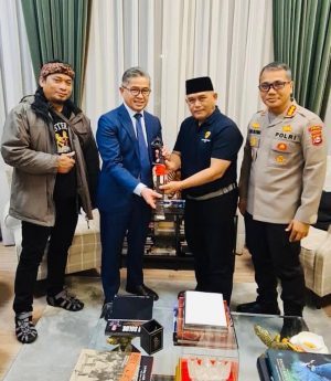Tim diwakili Dirtahti Polda Banten AKBP Dr. Agus Rasyid memberikan titipan Kapolda Banten Irjen Pol. Prof. Dr. Rudy Heriyanto kepada Dubes berupa 1 bilah golok pusaka yang sudah dipersiapkan sebelumnya dari Banten.