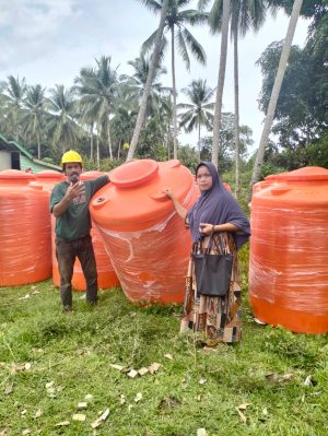 Untuk tahap ini, tandon air yang dibagikan sebanyak 83 buah. Warga gembira mendapatkan bantuan tersebut karena memang sangat dibutuhkan, sementara jika ingin membeli maka warga harus mengeluarkan biaya besar.