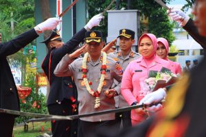 Kedatangan Kapolres bersama ketua Bhayangkari cabang Tuban disambut dengan tradisi welcome parade ditandai pengalungan bunga oleh AKBP Rahman Wijaya, S.I.K., S.H., M.H., bersama istri selaku pejabat lama di pintu gerbang Polres Tuban serta tari-tarian penyambutan dilanjutkan tradisi memasuki gerbang pora.