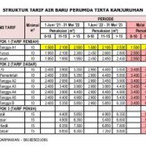 penyesuaian tarif air minum tahap III sesuai dengan Surat Keputusan Bupati Malang Nomor : 188.45/379/KEP/35.07.013/2021 tentang Tarif Air Minum Perusahaan Umum Daerah Tirta Kanjuruhan, yang tidak diberlakukan bagi pelanggan masyarakat berpenghasilan rendah (MBR).