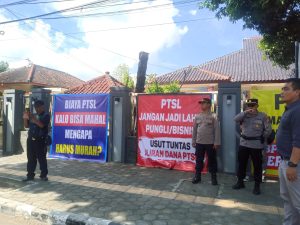 Disela sela aksinya, salah satu koordinator lapangan, Tomi Aribowo mengatakan, kedatanganya untuk menuntut program PTSL di Desa Ponggok kecamatan Mojo dihentikan sementara karena ada masalah yakni tanah warga di jadikan tanah kas desa.