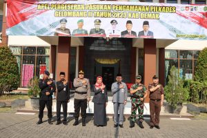 Polres Demak terkait hal tersebut,selanjutnya melaksanakan Apel Gelar Pasukan Pengamanan Pilkades Serentak Gelombang II Tahun 2023 di Lapangan Setda Demak, diikuti oleh seluruh personel pengamanan TPS Pilkades, Sabtu (7/10/2023).