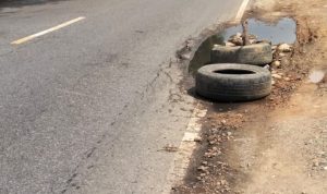 Ruas Jalan Nasional PPK 1.1 PJN 1 Wilayah Sumbar tiang Penyanggah miring, sampai saat ini belum ada diperbaiki oleh Kementrian Pekerjaan Umum dan Perumahan Rakyat, Ditjen Bina Marga Balai Pelaksanaan Jalan Nasional, PJN 1, PPK 1.1Wilayah Sumatera Barat.