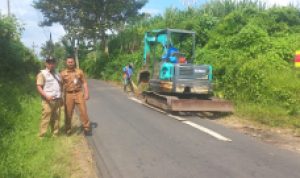 akibat miringnya Jembatan tersebut setelah dilalui mobil fuso bermuatan alat berat dan pengangkut material tanah.