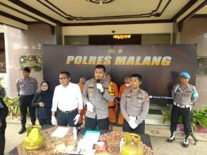 “Kita berhasil mengungkap kasus tindak pidana penyalahgunaan gas elpiji bersubsidi di Kecamatan Wonosari, Kabupaten Malang ada tiga orang tersangka yang diamankan,” kata Kompol Wisnu saat konferensi pers di Polres Malang, Rabu (20/12/2023).
