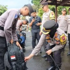 Selesai Apel Kapolres Salatiga mengecek Kaporlap yang telah dibagikan termasuk mengecek isi tas anggota khususnya yang tugas BKO guna memastikan perlengkapan yang dibawa memadai selama tugas BKO, dan fokus memberikan perlindungan, pengayoman dan pelayanan kepada masyarakat. (Nar)
