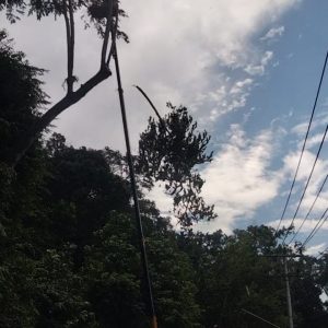 Pekerjaan kedua dilanjutkan (11/06) dengan dukungan PLN cabang Indarung untuk memadamkan listrik guna pemangkasan kayu, untuk antisipasi kecelakaan.