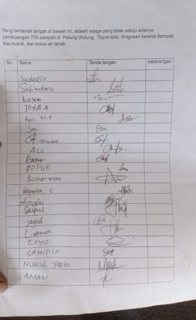 beredar surat penolakan dari warga Desa Toyomarto Kecamatan Singosari