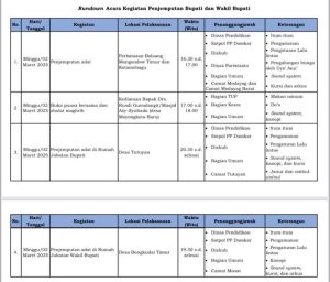 Setelah prosesi adat di perbatasan kota, Bupati dan Wakil Bupati Boltim dijadwalkan untuk mengikuti serangkaian kegiatan, antara lain: