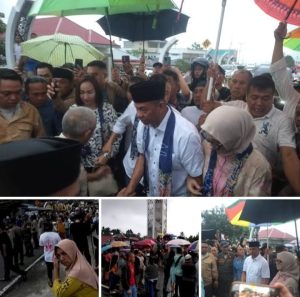 Antusias masyarakat dalam penjemputan walaupun di guyur hujan tidak mengurangi semangat mereka untuk melihat langsung kedatangan Bupati Oskar Manoppo dan Argo Sumaiku yang sangat di cintai masyarakat Boltim.