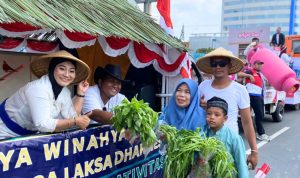 Tak hanya sekedar mengikuti pawai, Rutan Batam juga membagikan hasil kebun seperti kangkung dan bayam secara gratis kepada masyarakat yang hadir.