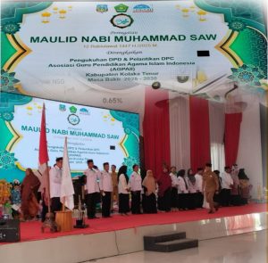Detik Bhayangkara.com, Koltim -Pemerintah Daerah (Pemda) Kabupaten Kolaka Timur dan Pihak Kementerian Agama Kolaka Timur menggelar Maulid Nabi Muhammad SAW yang dirangkaikan dengan Pengukuhan Dewan Pimpinan Daerah (DPD) Serta Pelantikan Dewan Pimpinan Cabang (DPC) Assosiasi Guru Pendidikan Agama Islam Indonesia (AGPAII) Kabupaten Kolaka Timur untuk masa bhakti 2025-2030 di Aula Pemda Koltim, Selasa (16/9/2025).